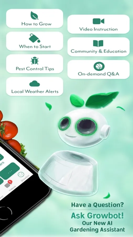 Your gardening questions are answered on the spot, giving you gardening solutions now. We call it GROWBOT!
