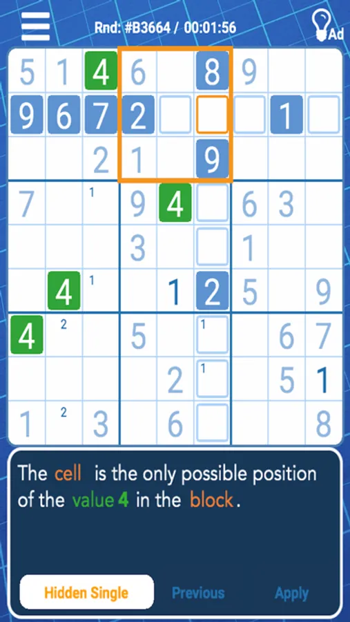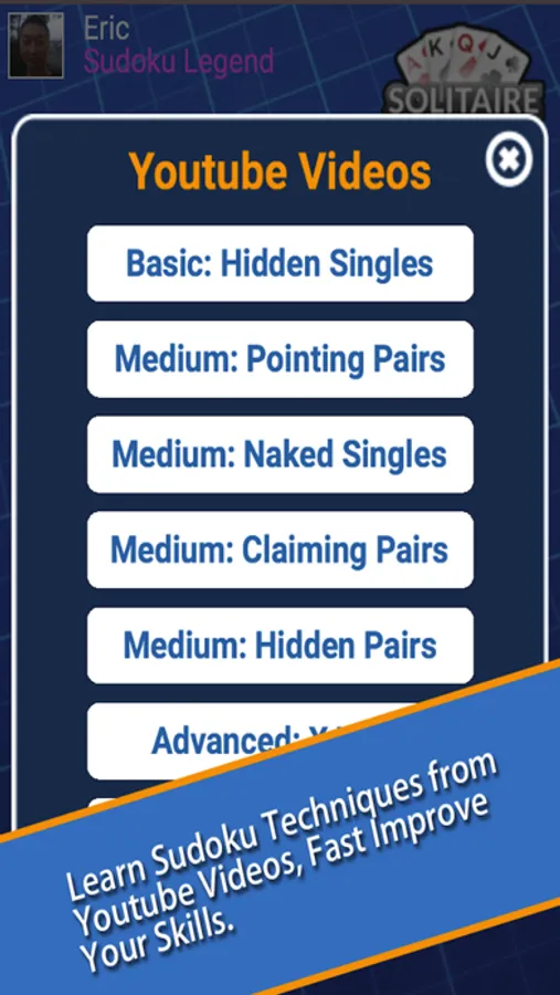 - Advanced hint system. It teaches you solve sudoku step by step using popular sudoku techniques: Hidden Single, Naked Single, Hidden Pair, Naked Pair, Pointing, Claiming, X wing, Swordfish, etc.