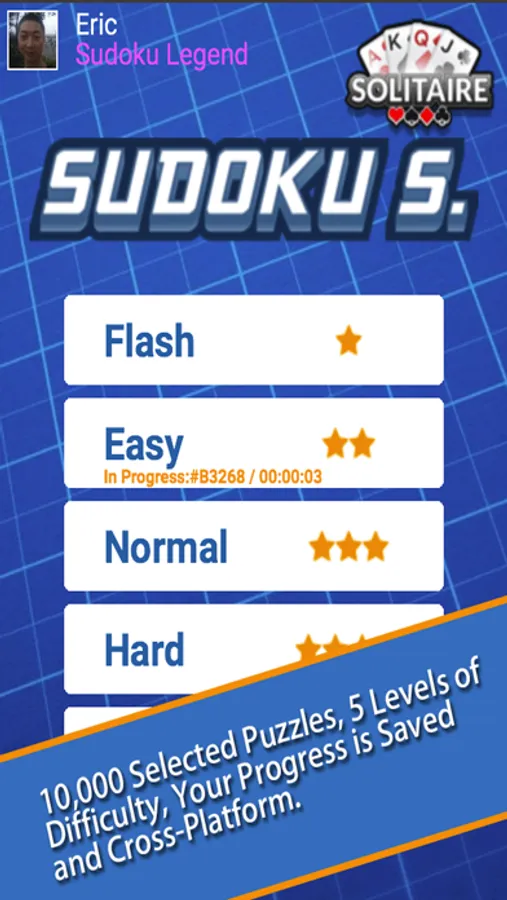 - 10,000 selected puzzles, in 5 levels of difficulty;