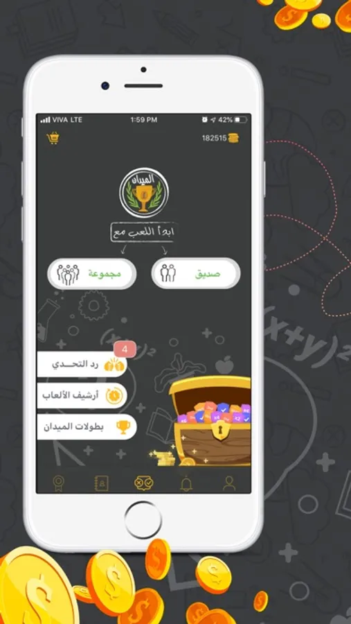 تحتوي لعبة الميدان بنك الاسئلة الذي تم اضافته وتدقيقه من قبل النظام, تظهر الاسئلة بشكل عشوائي للمتسابقين, وتكون الاجابات محدده من قبل النظام تظهر الاجابة الصحيحة بعد اختيار المتسابقين للاجابة في خلال المسابقة.