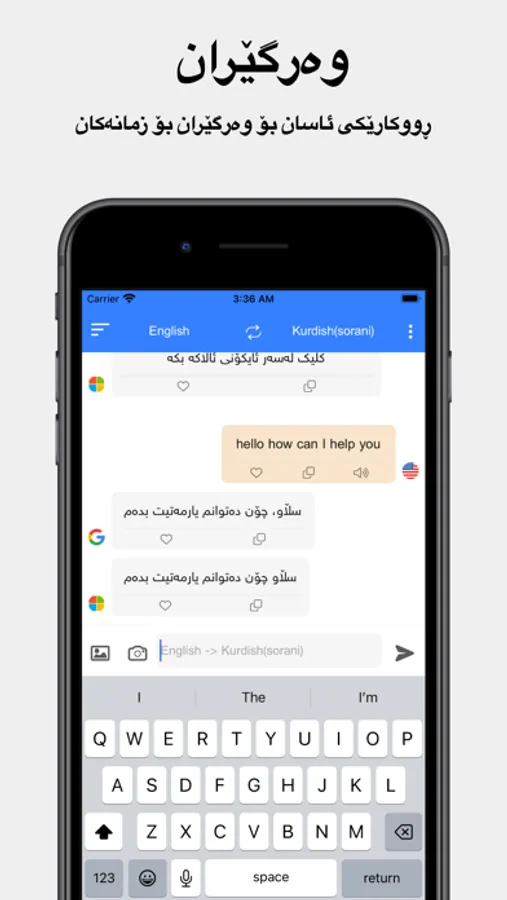 ٨- له كاتی ههبوونی هێڵی ئینتهرنێت دهتوانی ههموو وشهو ڕستهكان وهربگێریت بۆ سهر زمانه جیهانییهكانی تر.