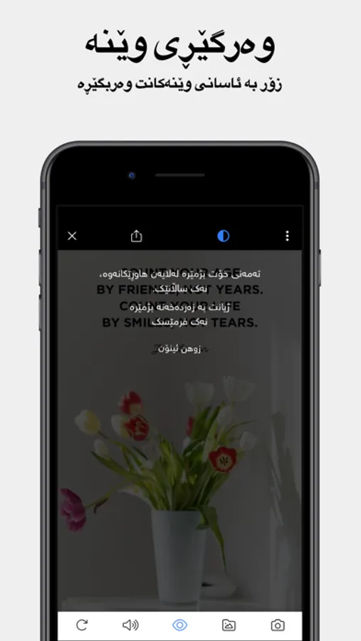 ٧- دهتوانی كامیرهی مۆبایلهكهت بهكار بهێنیت بۆ گهڕان به دوای وشه ئینگلیزیهكان به شێوهیهكی زۆر خێرا.