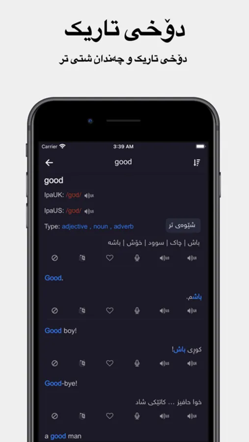 For the first time biggest and first kurdish sentence dictionary which has many features such as: