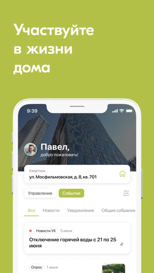 - отслеживайте статус заявок и оценивайте качество выполненных услуг