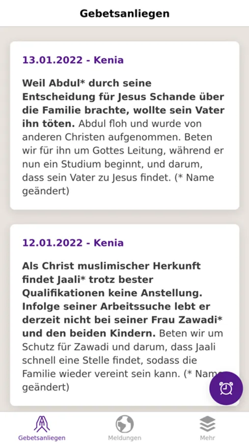 - Tägliche Gebetsanliegen für verfolgte Christen