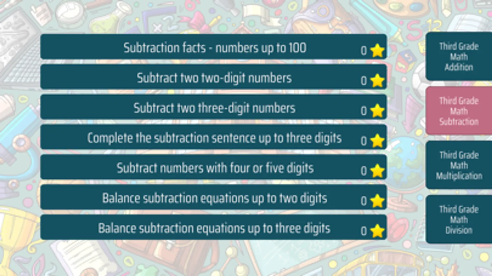 With Third grade Math Subtraction you can practice and improve the following skills:
