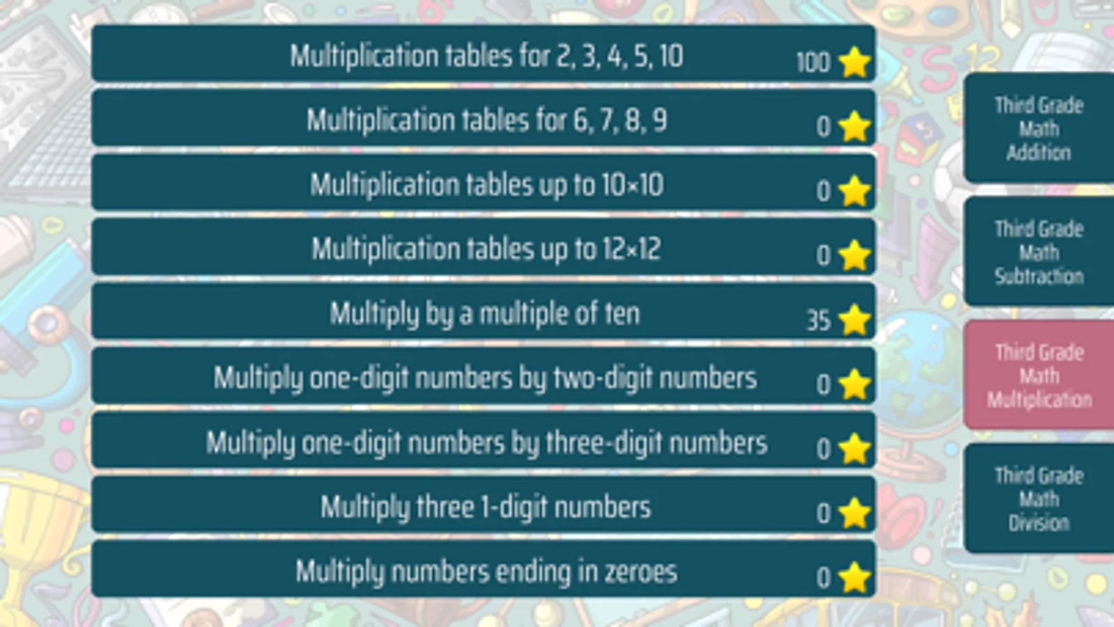 With Third Grade Math Multiplication you can practice and improve the following skills: