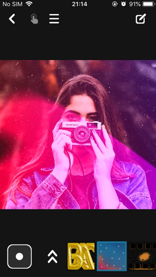 Select form balloons, diamonds, hearts, flags and fireworks filters. Change the appearance of the filters to make it your own.