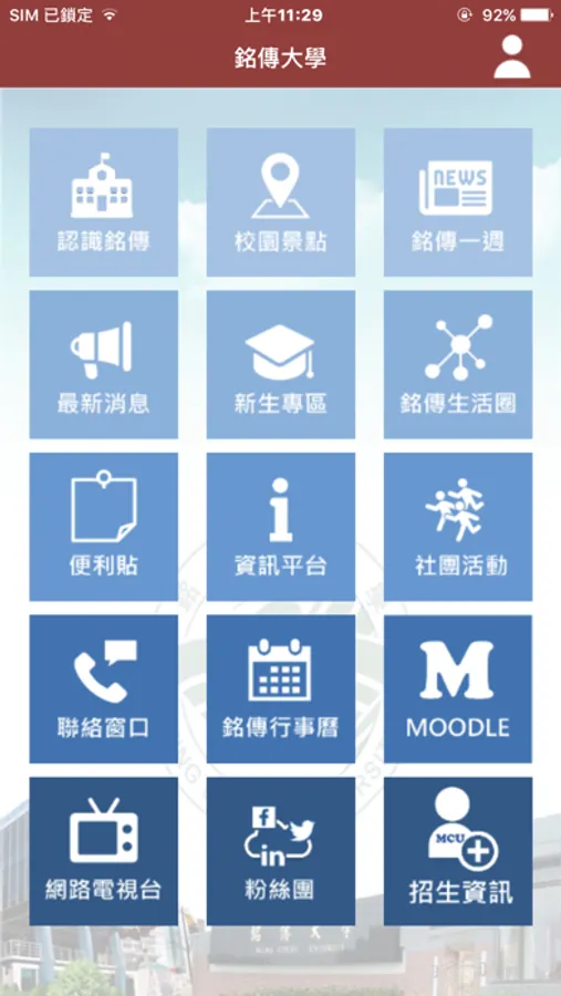 銘傳大學App為銘傳大學所開發之應用程式。其目的是提供各界人士以及銘傳大學師生一個方便且即時的方式,來認識並了解銘傳大學及其周邊環境。本系統提供學校之認識銘傳、校園景點、銘傳一週、最新消息、新生專區、銘傳生活圈、便利貼、資訊平台、社團活動等資訊。同時提供校園粉絲團的Facebook版面,提供校園各種活動資訊。