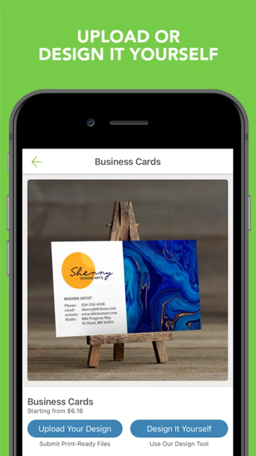Simply pick your product, tap to choose your orientation, swipe to see every available size, select your paper stock while comparing prices, and upload your design in a matter of seconds.
