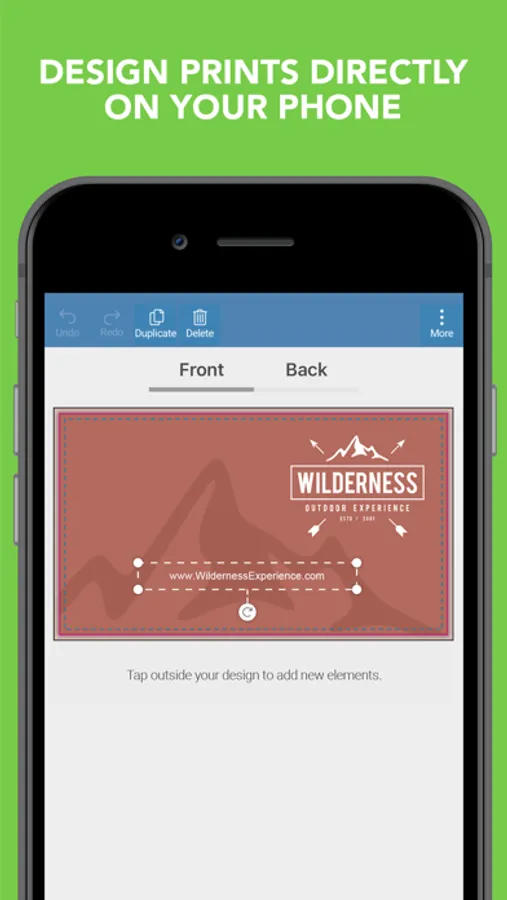 Our user-friendly design tool is now available on our app. Create quick designs from scratch using elements from our designer and images from your photo library.