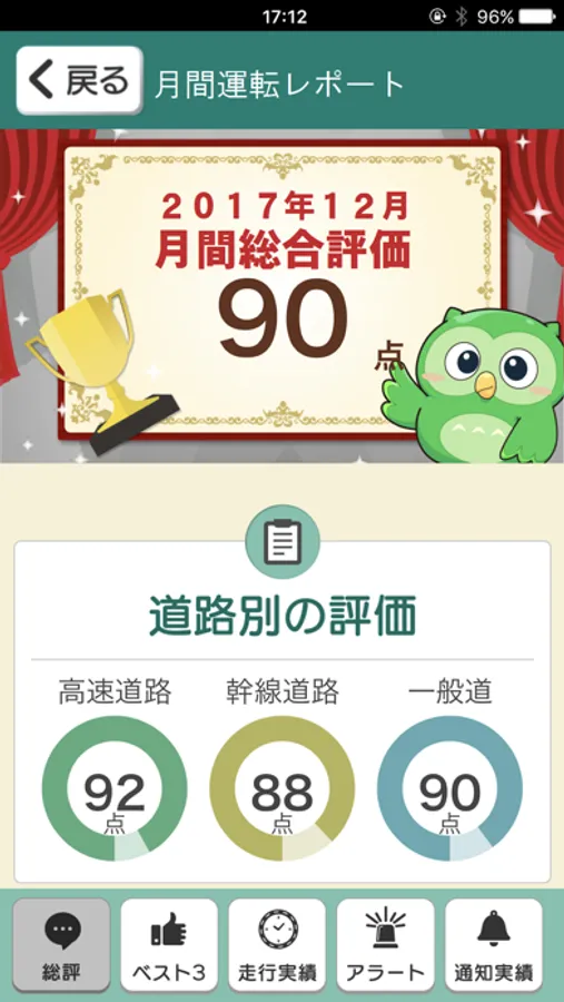 1回の運転ごとに、危険運転の発生状況や各種アラートの通知状況等から運転性向を分析し、運転レポートをご提供します。また、車載器と接続させることで、毎回の運転レポートはもちろんのこと、毎月の総合評価として月間運転レポートをご提供します。なお、見守り者に対しても、月に一度の見守りレポートをご提供します。