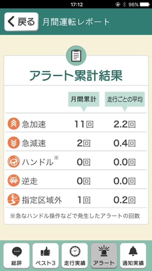 ⑥危険な運転を行っていない場合でも、危険な運転として記録される場合があります。