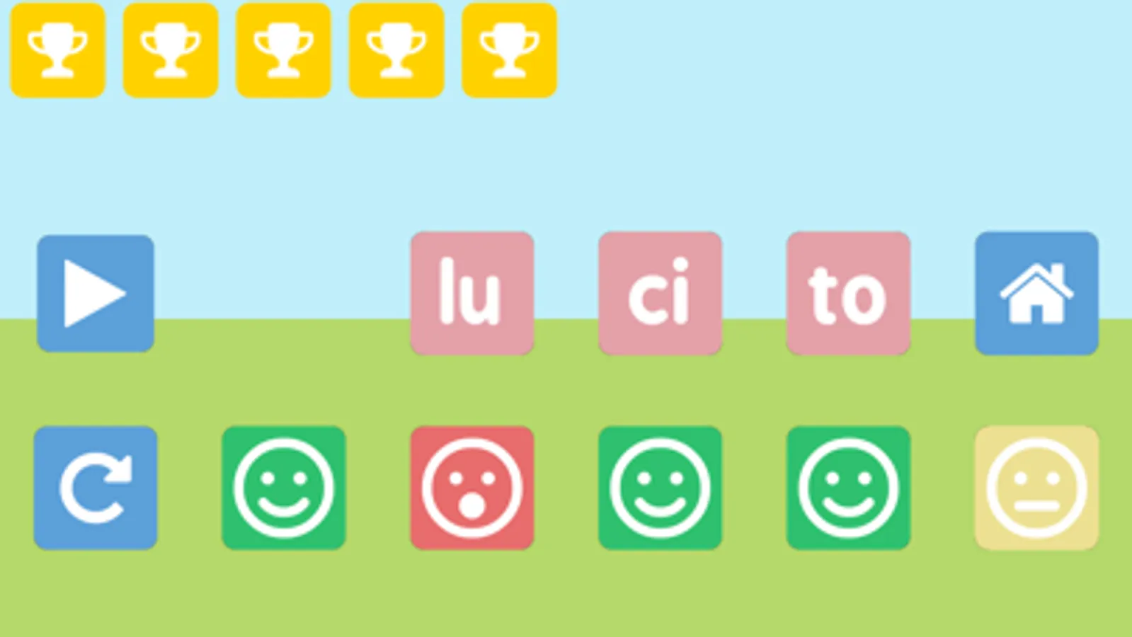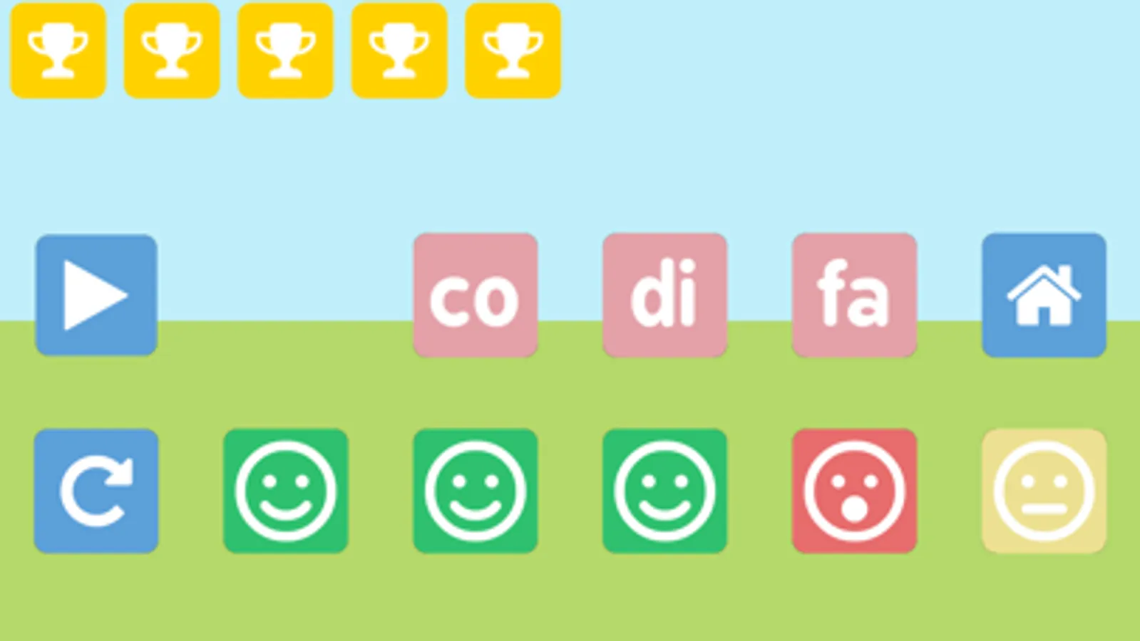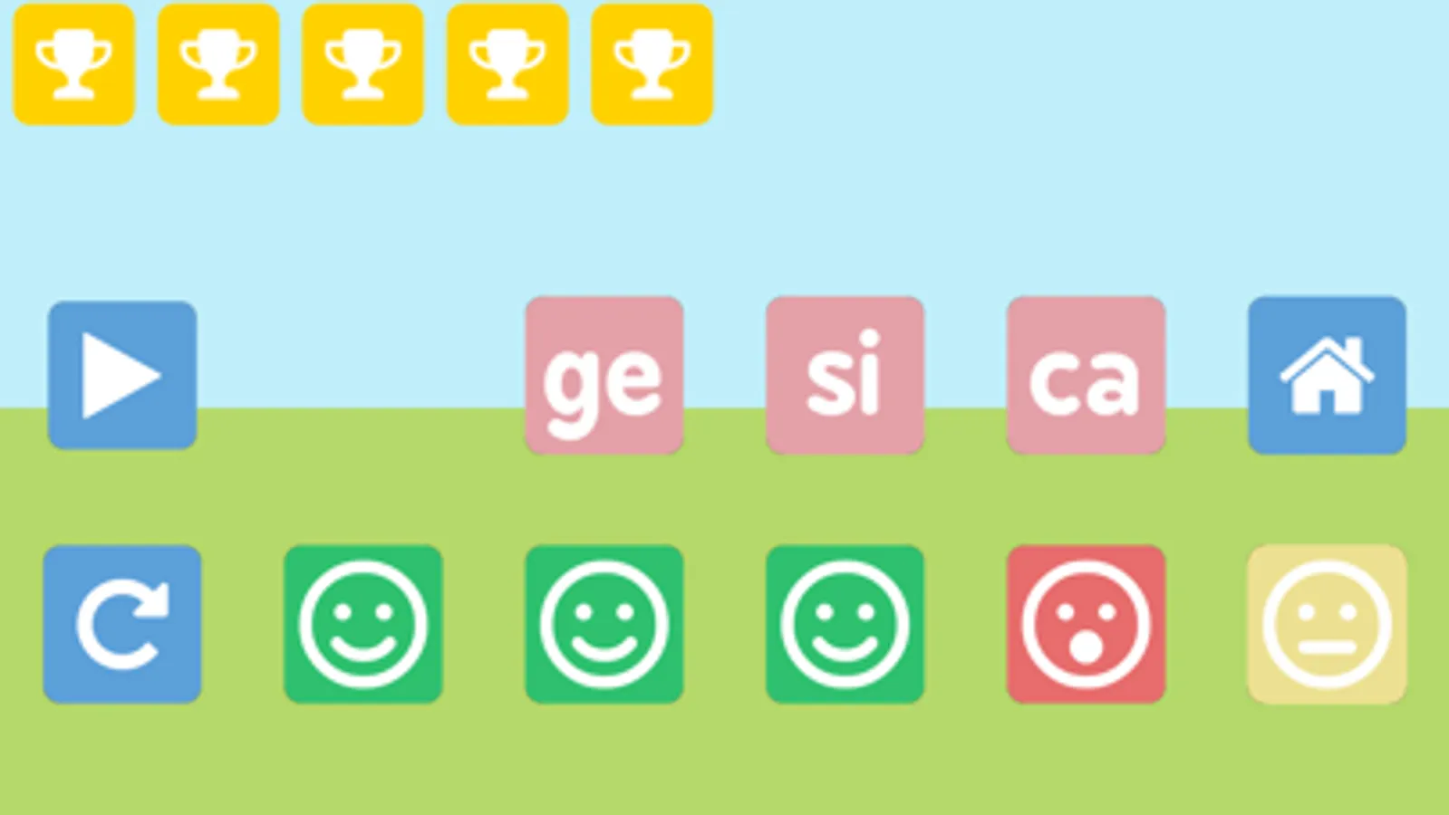 Un gioco per imparare a leggere le sillabe della lingua italiana. Ascolta la domanda e indica la sillaba giusta! Una faccia sorridente per ogni risposta esatta, una faccia triste per ogni risposta sbagliata. Vinci una coppa ogni cinque risposte esatte. Le sillabe presentate sono composte da una consonante seguita da una vocale.