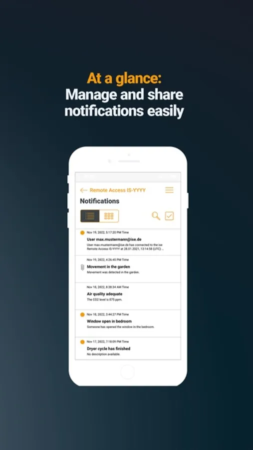 Depending on your individual configuration, you will receive messages like: “Someone has opened a window”, “someone has rung the doorbell” or “the washing machine cycle has finished”.