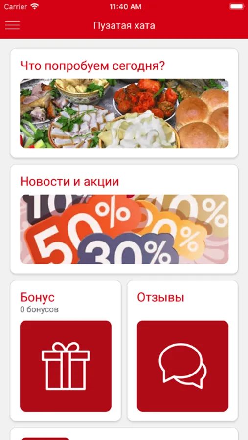 Мобильное приложение "Пузатая хата" — это новый удобный способ заказать еду из любимого кафе. Попробовать нашу кухню стало как никогда просто! В приложении доступны: