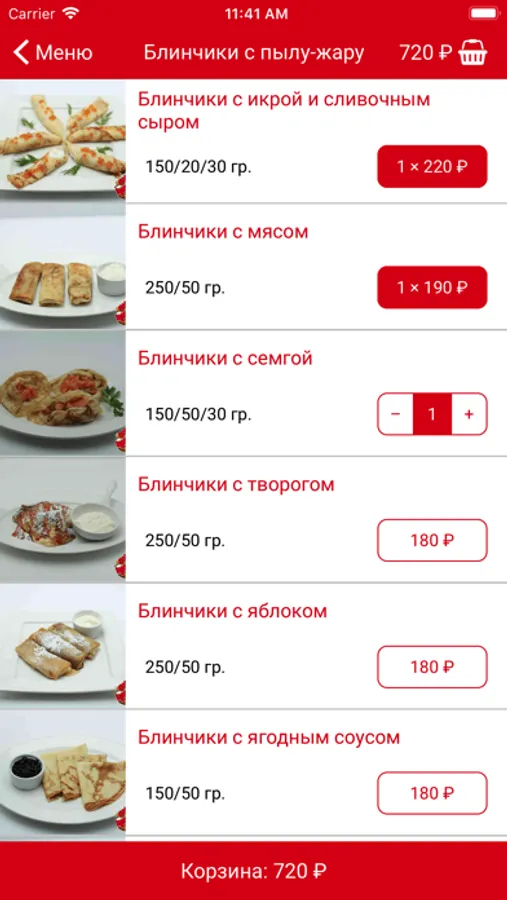 - Актуальное меню, вкусные описания и аппетитные фото;