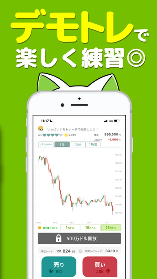 By placing orders to "sell" or "buy" a currency while viewing a real virtual FX chart, you can easily practice trading like the real tools, mt4, mt5, and cymo!