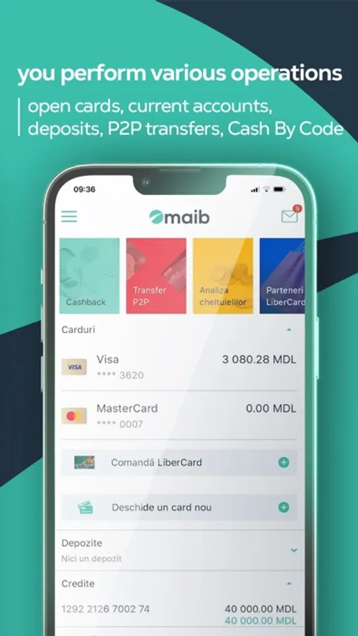 To benefit from the advantages of maibank, you need to install the app and have an account/card opened at maib.