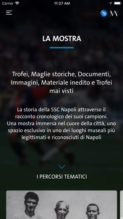 La mostra progettata dall’architetto Andrea Mandara, con consulenza grafica di Francesca Pavese e testi di Serena Venditto, propone un percorso dall’età pionieristica del calcio a Napoli ai giorni nostri.