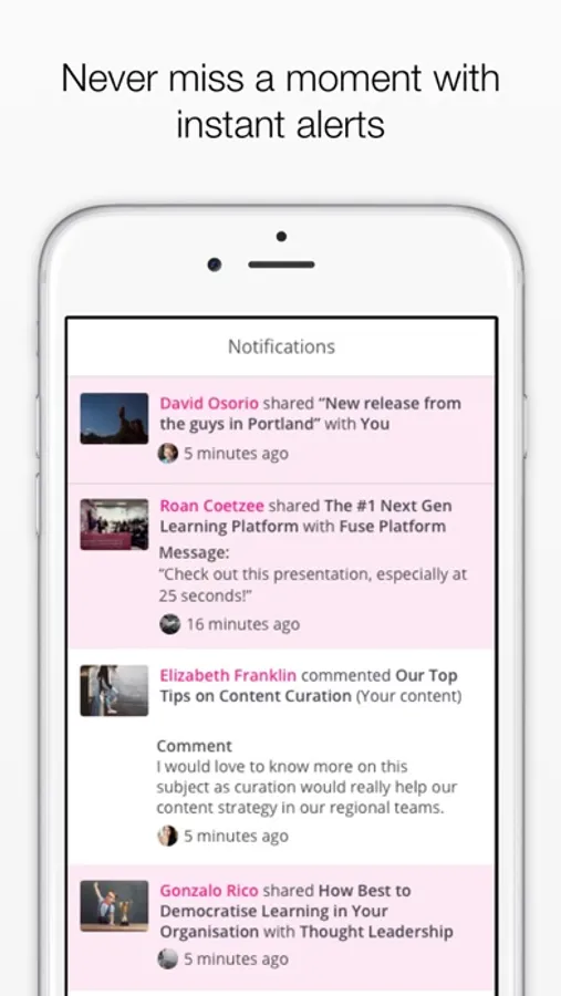 Share links, create articles, conduct coaching conversations and ask questions on the move. Gain instant access to all content through our enhanced search functionality directly in the app.