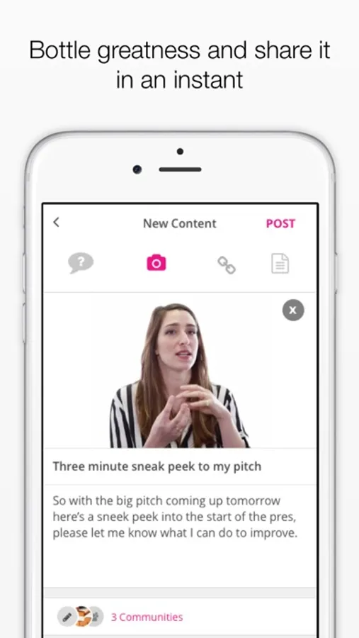 Capture and upload any content directly from your phone and share it with the people or communities that you are connected with.