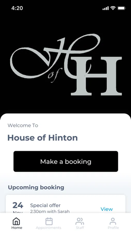 The House of Hinton app makes booking your appointments and managing your loyalty points even easier. You're just a few taps away from feeling good and looking great!