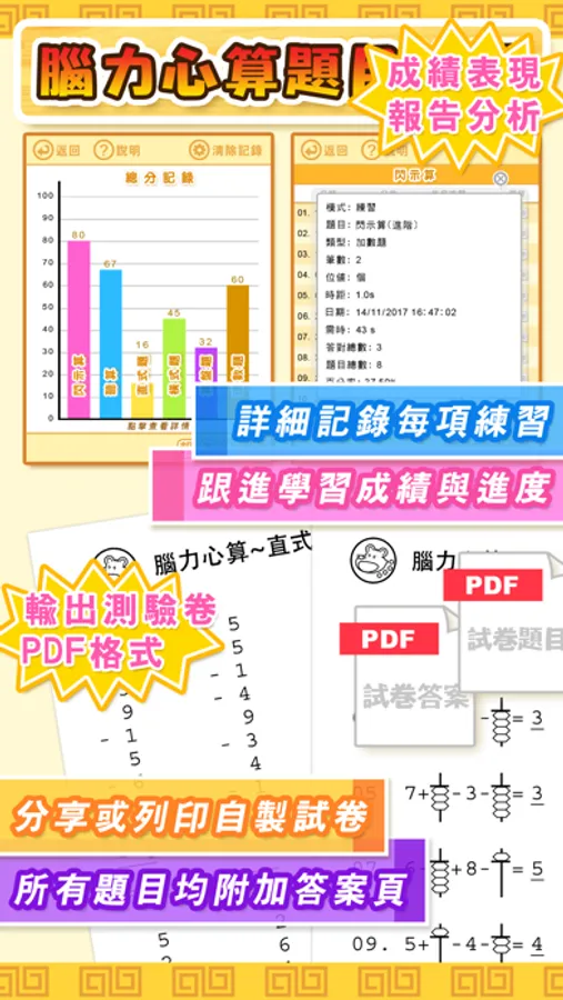 除可透過程式進行題目練習,製成的試卷PDF亦可以列印或電郵用作練習用途。