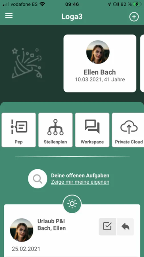 Mit der P&I LOGA3 App haben Sie von überall Zugriff auf die HR-Plattform. Entsprechend Ihrer vorkonfigurierten Berechtigung in P&I LOGA3, sind in der APP unterschiedliche Widgets verfügbar: