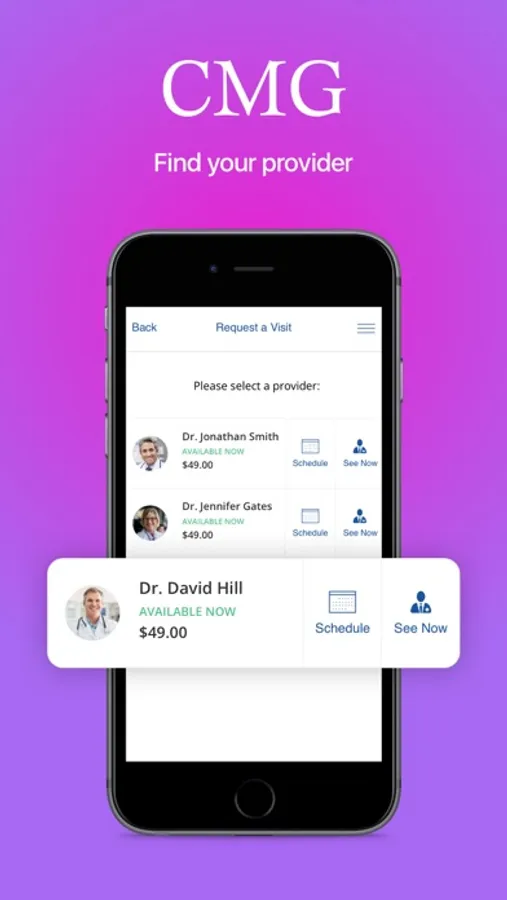CMG Telemedicine is a convenient way to connect to your provider via a face-to-face secure video chat. CMG Telemedicine is a HIPPA compliant solution offering you anytime, anywhere access using your computer, smartphone or tablet.