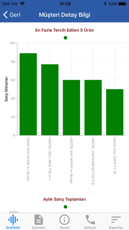 Cari ve stok ekranlarında grafik rapor desteği mevcuttur.Grafiksel olarak stok ve cari kart bilgileri görülebilir.