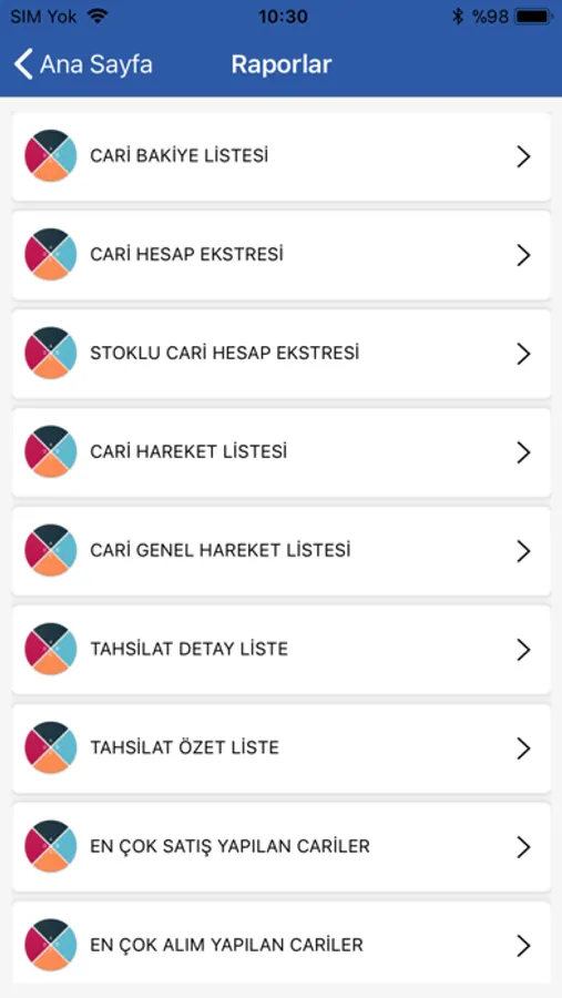 Yöneticiye ait özel rapor ekranında hızlı bir şekilde fatura , sipariş , kasa , banka , çek/senet durum raporlarına ulaşılabilir.