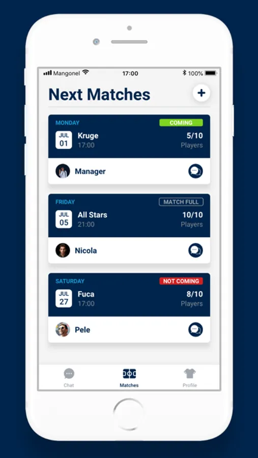 An application for fast and easy organization of football matches with the mission to connect all recreational football players in the world.