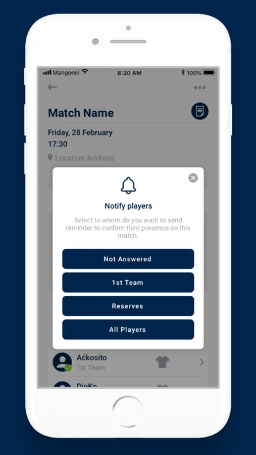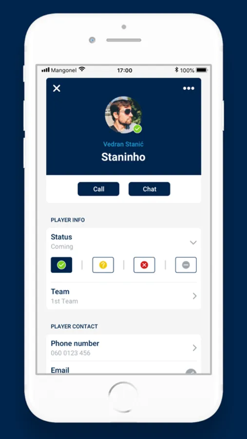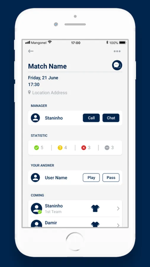 • Play/Pass - easily confirm to all that you are coming or not coming to a match