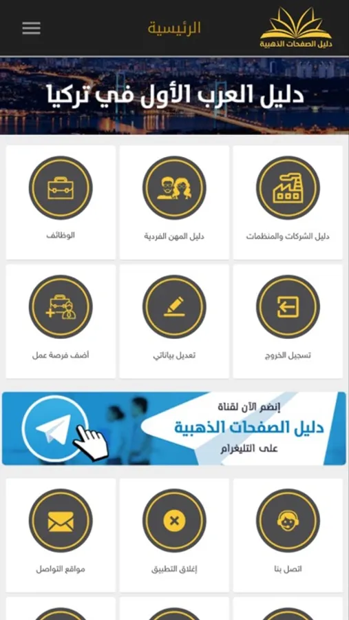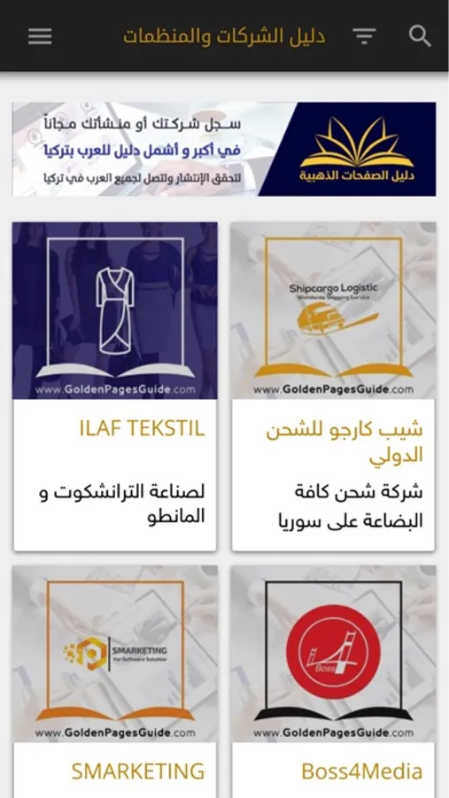 إنطلاقاً من حاجة العرب المقيمين في تركيا لمنصة تعتبر بمثابة قاعدة بيانات شاملة تكون دليل لهم تساعدهم في التعرف و التواصل مع كافة الفعاليات الاقتصادية و التجارية و الصناعية و الخدمية و الإنسانية و التعليمية و التربوية العربية في تركيا ومن هذا المنطلق تم بعون الله تعالى إطلاق موقع دليل الصفحات الذهبية . إن دليل الصفحات الذهبية هو موقع سوري يعمل لخدمة العرب المقيمين في تركيا من خلال تعريفهم على كافة المشاريع العربية القائمة على كافة الأراضي التركية مجاناً ليكون دليل العرب الأول بتركيا .