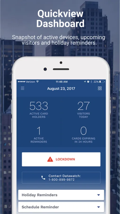 - Safely and securely maintain your credential database, schedules, visitor logs and activity history.