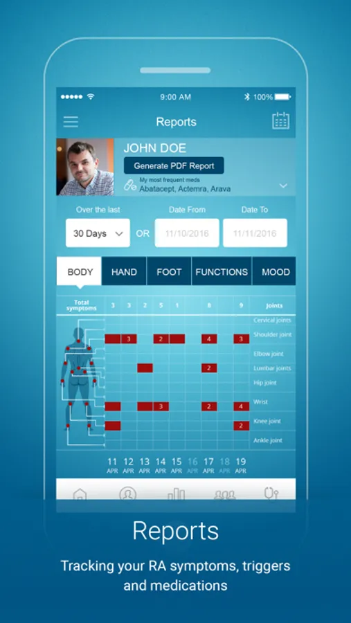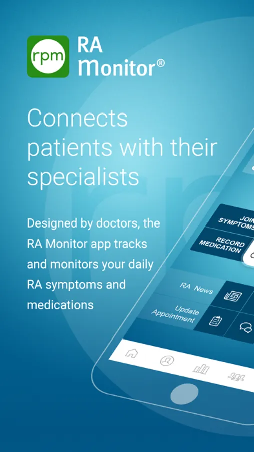 The first Rheumatoid Arthritis (RA) monitoring app that connects you to your specialist presents a clean interface and informative reporting. More than just an intuitive tool for tracking your symptoms, their impact on your ability to function, and triggers, RA Monitor allows you to access the support of your specialist (or our RA Navigator) and the anonymous community of other RA sufferers that you can interact with if you choose. Easy-to-read reports can be shared with others, such as family, friends, or healthcare providers. Designed in concert with RPM Healthcare’s founders' decades of patient education expertise.