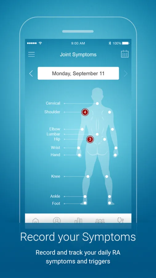 * Highly intuitive RA Symptoms Tracker (Location, function impairment, weather, menstrual cycle, stress)