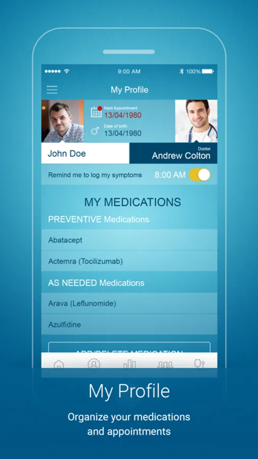 * Connect to your specialist (or our RA Navigator)—allows healthcare providers to follow your progress between visits. Change providers when you choose.