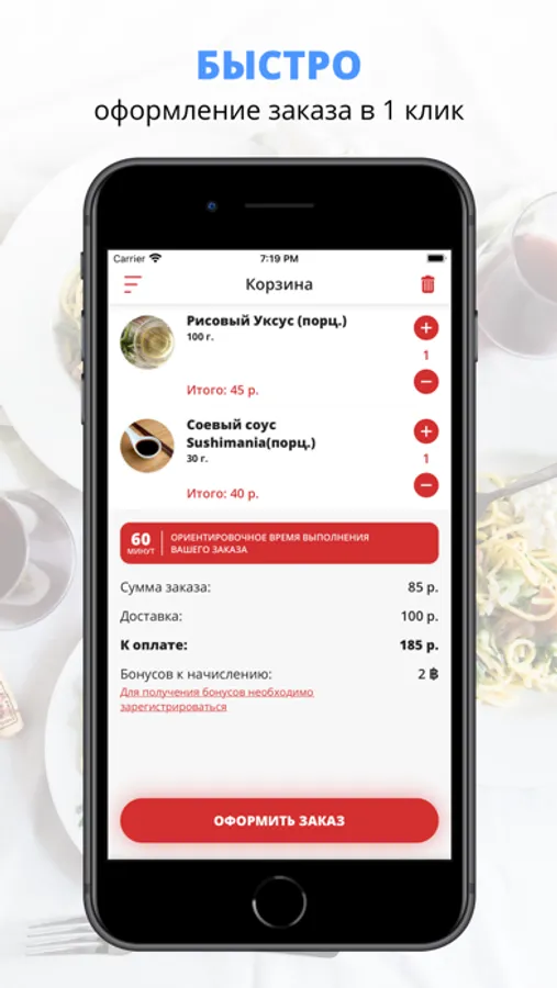 Скачивайте наше приложение, оформляйте заказ и наслаждайтесь любимой едой, где бы Вы ни были! Приятного аппетита!
