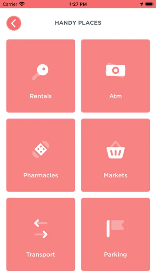 The app also features a useful map with handy places like the nearest ATMs, local rentals, transport or markets!