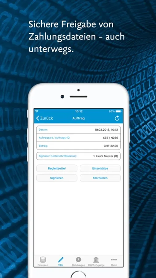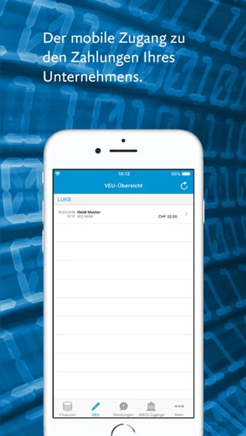 Kontrollieren Sie Zahlungen Ihres Unternehmens unabhängig von Ort und Zeit. Sie können die Zahlungen direkt in der App freigeben oder stornieren. Dank Push-Mitteilungen sind Sie zudem immer auf dem neusten Stand. Die LUKB Direkt App ist kostenlos und erhöht die Sicherheit im Zahlungsverkehr von Unternehmen. Die App basiert auf dem EBICS-Standard und verwendet die kanalunabhängige Verteilte Elektronische Unterschrift (VEU).