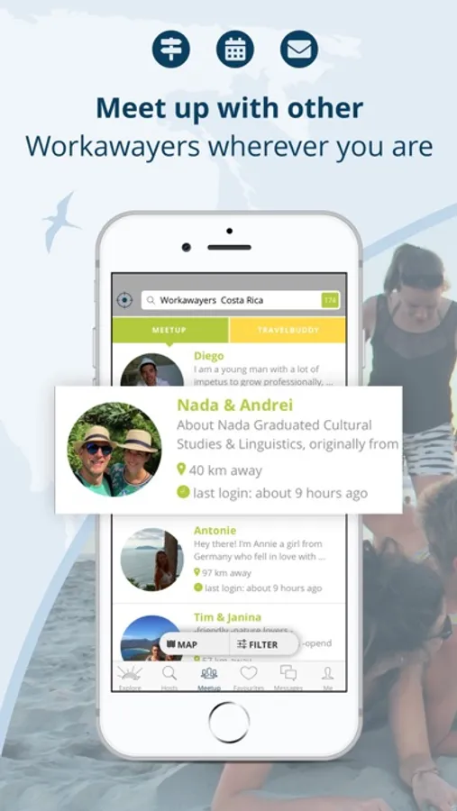 App for verified travellers only (host app is coming soon!) Meet like minded travellers along the way, and find a travel buddy to plan your new adventures with. Join our unique travel community and share amazing stories and ideas!