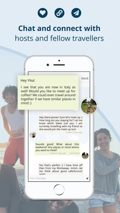 * Find a travel buddy and connect your accounts to plan your next Workaway adventure, visit hosts and apply together