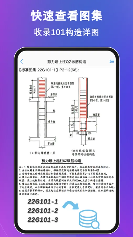 非常适合钢筋翻样在工作中使用,同时也可以帮助现场施工人员、结构设计人员以及土木工程学生进行101图集和人防图集的查询。