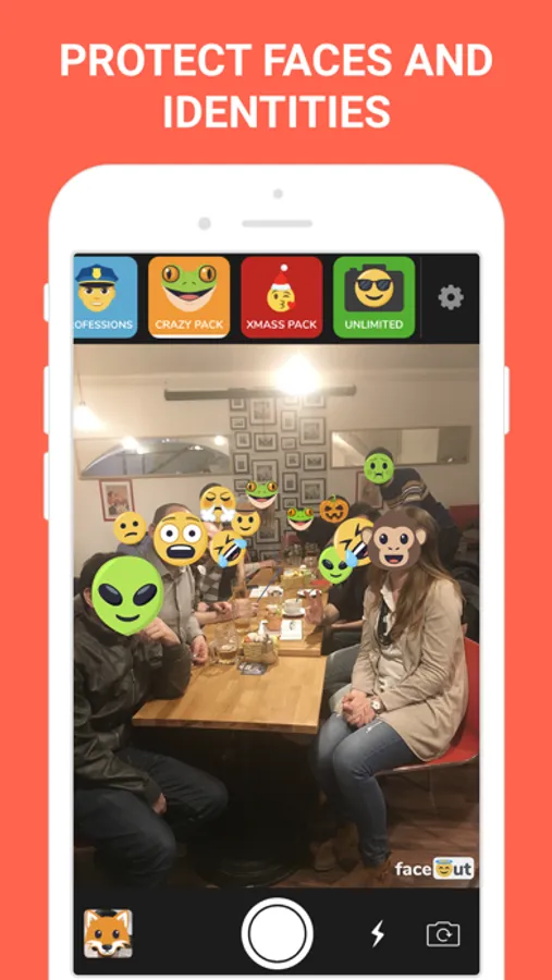 Camera app that use advanced iOS11 tech to mask all recognised faces through emotional face packs realtime while location of photo is unknown too. Pure Anonymous Camera.