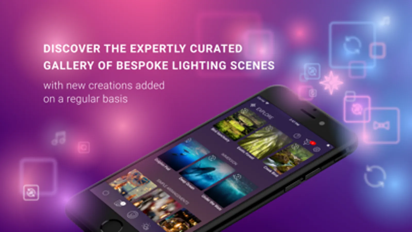 - Large gallery of individually generated static and dynamic lighting scenes for Philips Hue