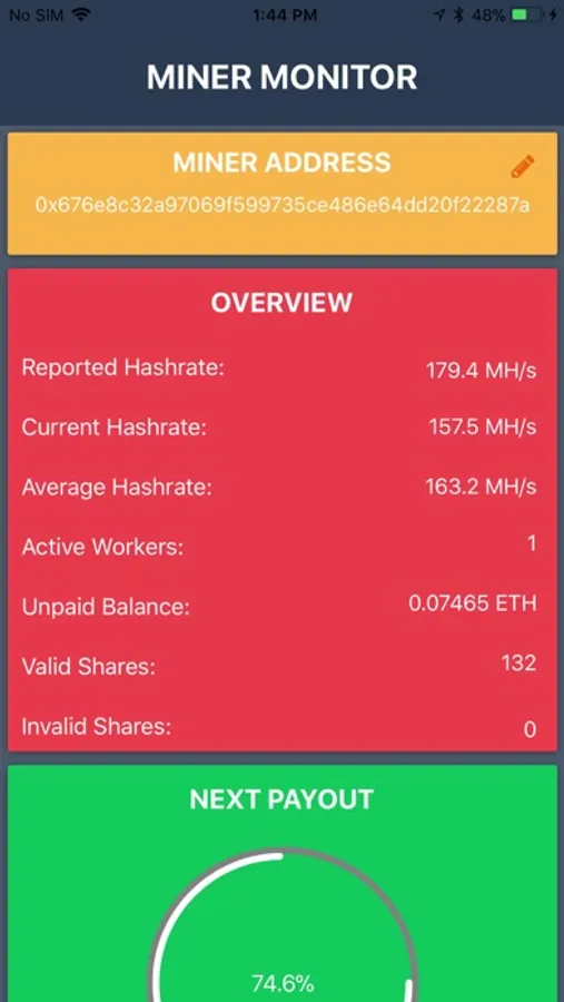 Just enter in your mining address or scan it with the built in QR code reader and the app does the rest!