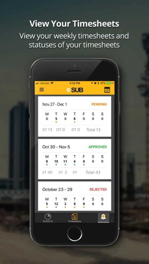 Tired of wasting time and money tracking your employees’ time? Go paperless and get more accurate data with eSUB Time. eSUB Time, is an employee time tracking solution that helps you -the subcontractor- take labor productivity to the next level.
