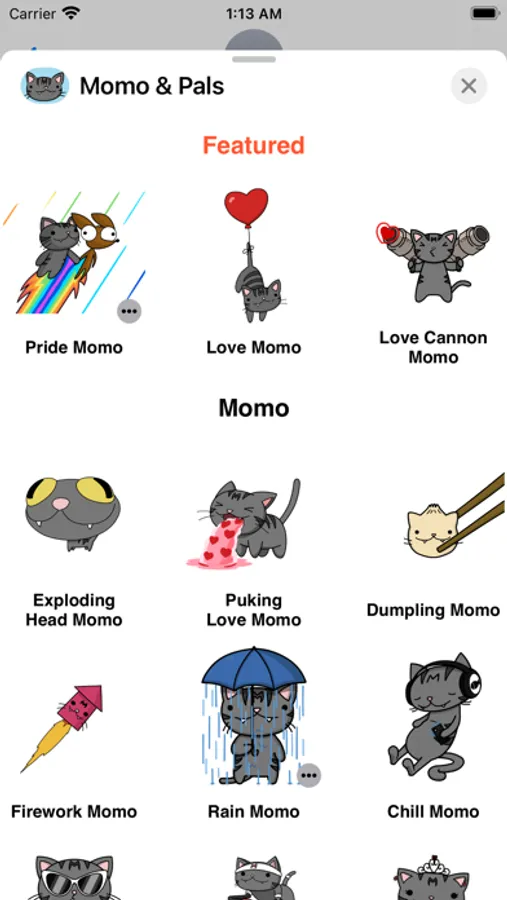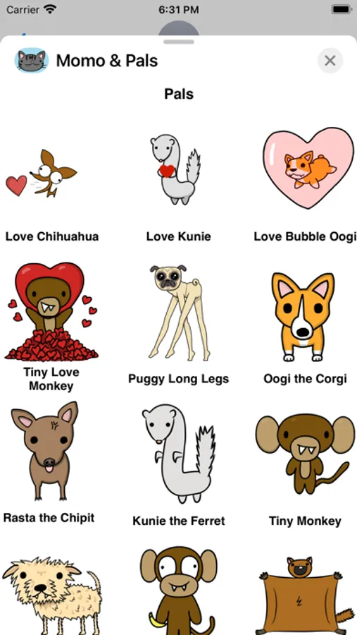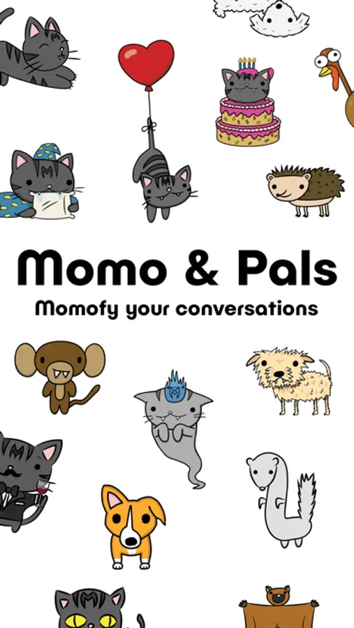 Momofy your conversation with this sticker pack based on a munchkin cat named Momo and his other wacky animal pals.